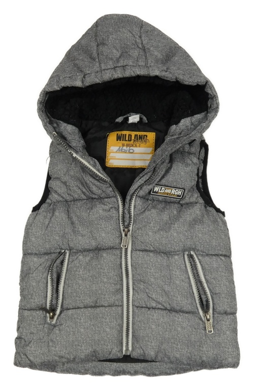 Šedá melírovaná šusťáková zateplená vesta s nášivkou a kapucí Dopodopo
