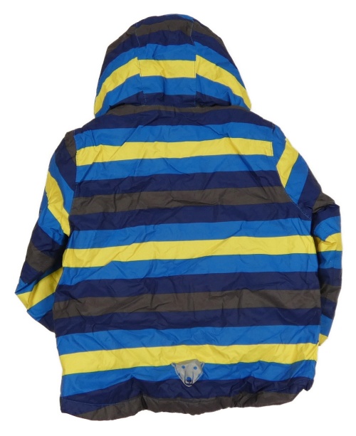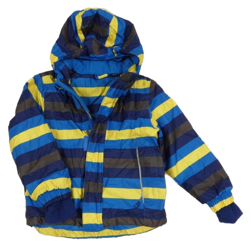 Tmavomodro-žlutá pruhovaná šusťáková zimní funkční bunda s kapucí Lupilu