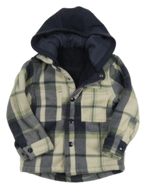 Tmavomodro-smetanovo-khaki kostkovaná plyšová košilová zateplená bunda s kapucí Dunnes