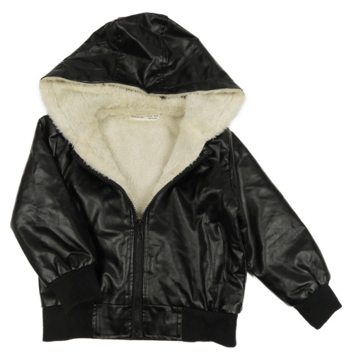 Černá koženková zateplená bunda s kapucí Shein