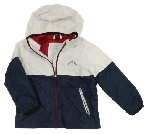 Bílo-tmavomodrá šusťáková jarní bunda s kapucí C&A