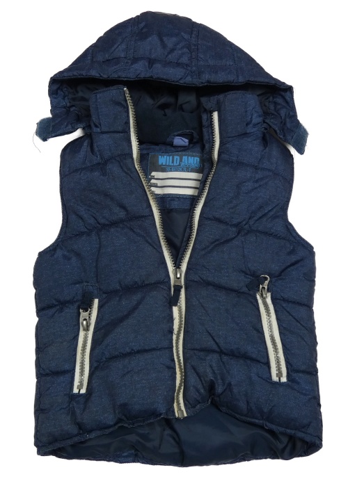 Tmavomodrá melírovaná šusťáková zateplená vesta s kapucí Dopodopo