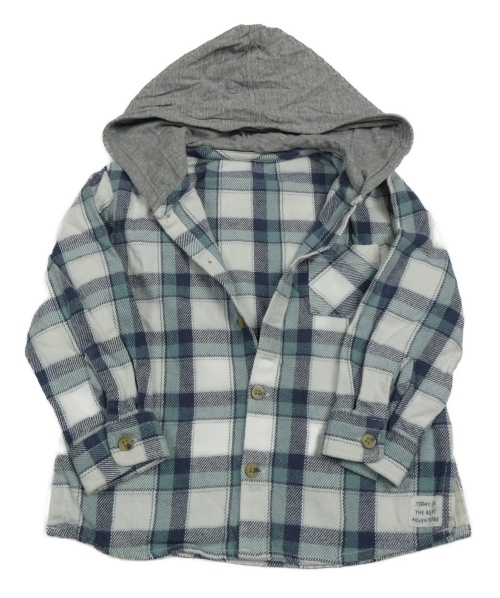 Tmavomodro-modro-bílá kostkovaná flanelová košilová bunda s kapucí Matalan