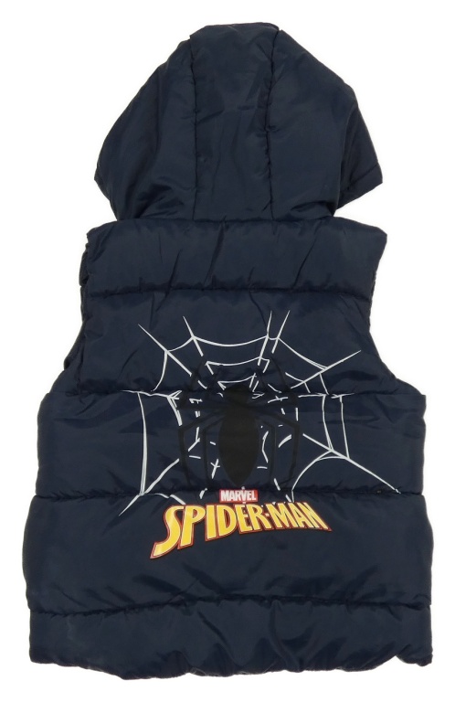 Tmavomodrá šusťáková prošívná zateplená vesta se Spider-manem a kapucí Marvel