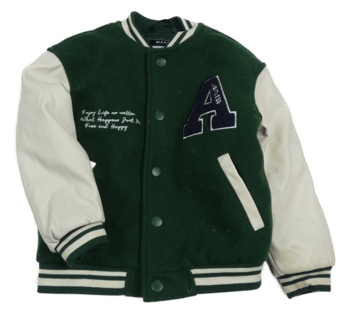 Zeleno-béžová flaušovo/koženková zateplená baseballová bunda s písmenem Kiabi