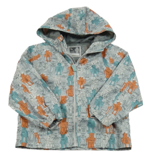Šedo-oranžovo-zelená šusťáková jarní bunda s roboty a kapucí Tu