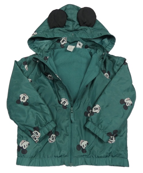 Tmavozelená šusťáková jarní bunda s Mickeym a kapucí H&M