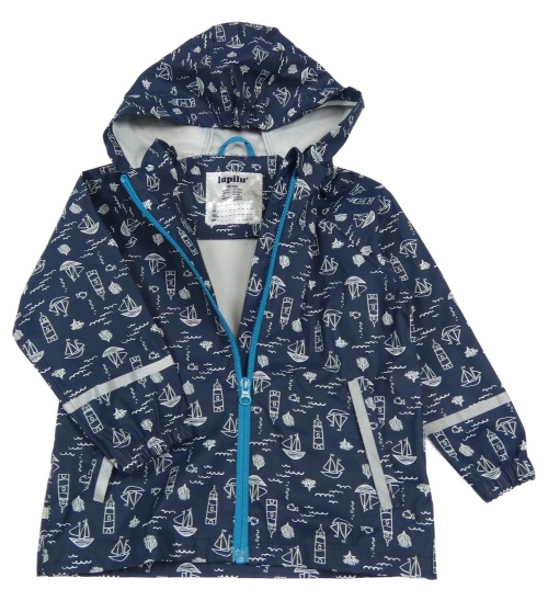 Tmavomodrá voděodolná jarní bunda s loďkami a kapucí Lupilu