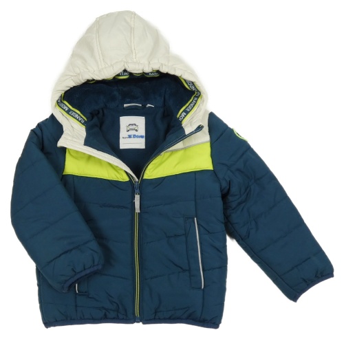Petrolejovo-bílá šusťáková prošívaná zimní bunda s kapucí Kids
