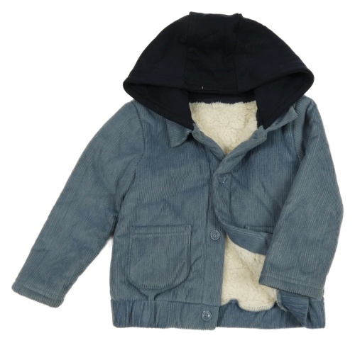 Modrošedá žebrovaná zateplená bunda s teplákovou kapucí Dunnes