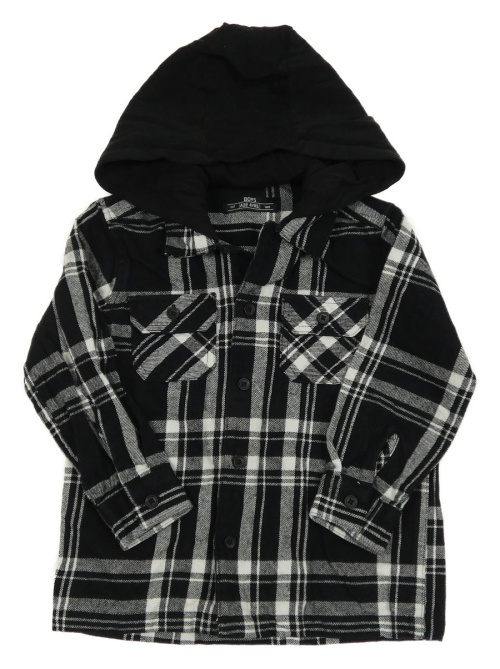 Černo-bílá kostkovaná košilová bunda s teplákovou kapucí Matalan