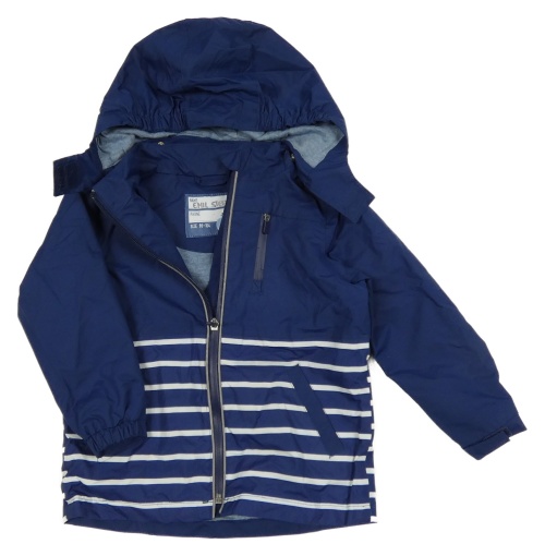 Tmavmoodro-bílá pruhovaná šusťáková jarní bunda s odepínací kapucí Tchibo