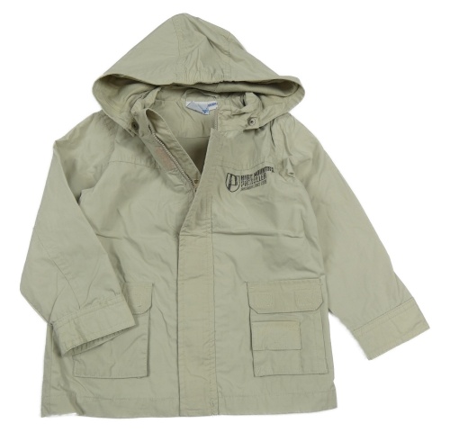 Béžová šusťáková jarní bunda s nápisem a kapucí Impidimpi