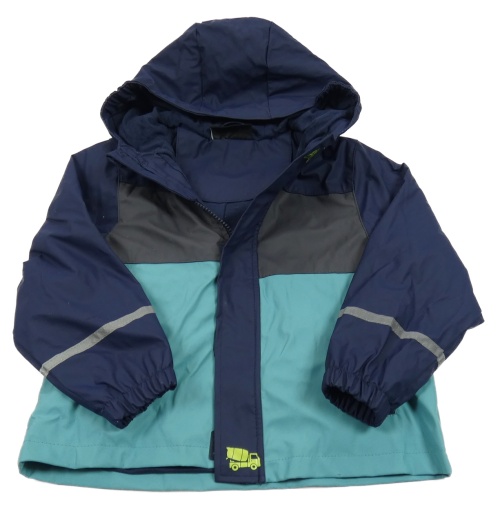 Tmavomodro-šedo-světlemodrá voděodolná jarní bunda s kapucí