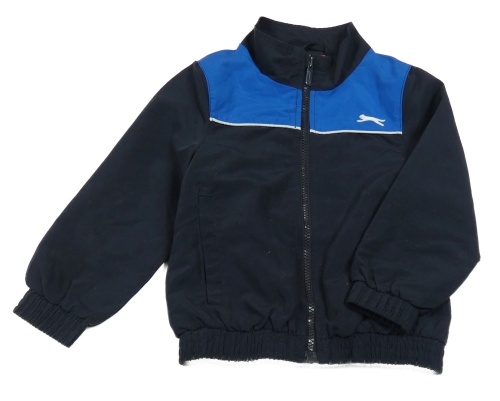 Tmavomodro-modrá šusťáková jarní bunda s logem Slazenger