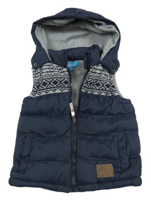 Tmavomodrá šusťáková prošívaná zateplená vesta se vzorem a kapucí Rebel