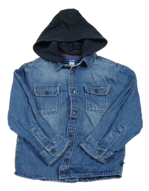 Modrá riflová bunda s tmavomodrou teplákovou kapucí okaidi