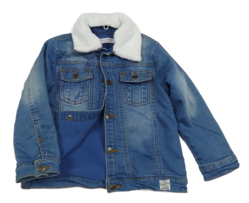 Modrá zateplená riflová bunda s chlupatým límečkem