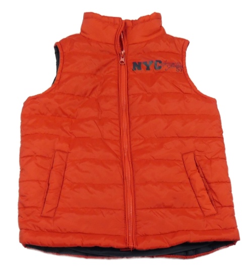 Červená šusťáková prošívaná zateplená vesta s nápisem Topolino