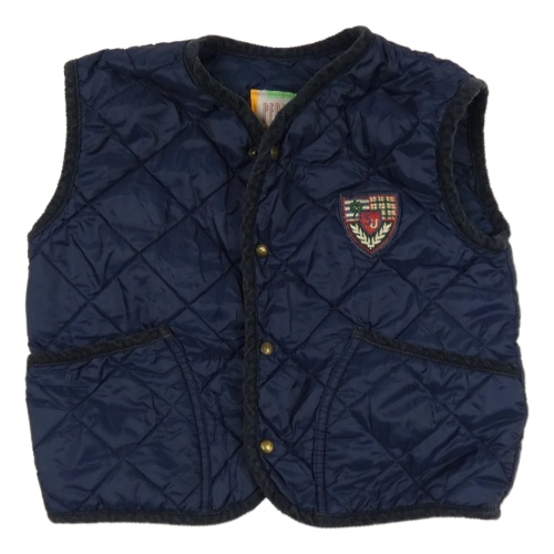 Tmavomodrá šusťáková prošívaná lehká zateplená vesta s nášivkou