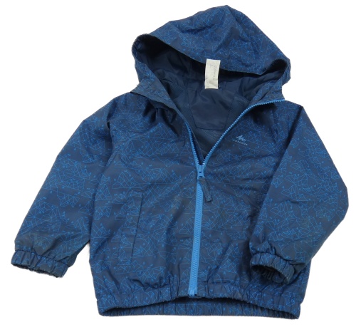 Tmavomodrá vzorovaná šusťáková jarní bunda s kapucí Decathlon