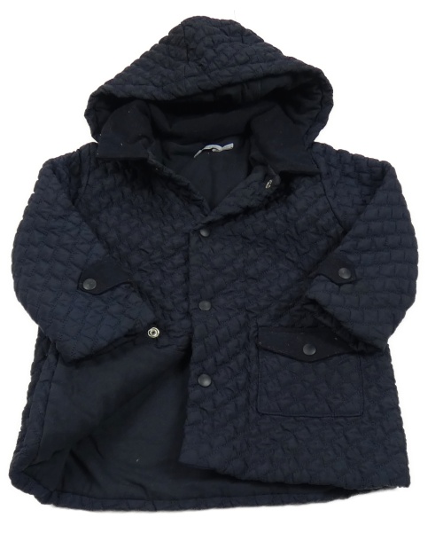 Tmavomodrá šusťáková prošívaná zateplená bunda s kapucí