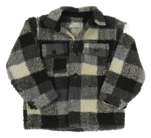 Tmavo-světlešedá kostkovaná huňatá košilová bunda Primark