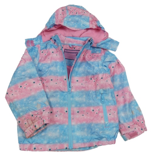 • Světlemodro-růžová pruhovaná batikovaná šusťáková jarní bunda s hvězdičkami a odepínací kapucí POCOPIANO