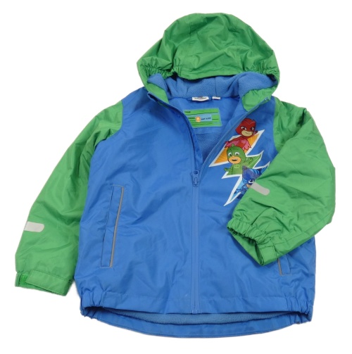 Modro-zelená šusťáková jarní bunda s PJ mask a kapucí