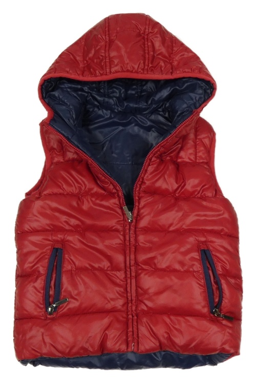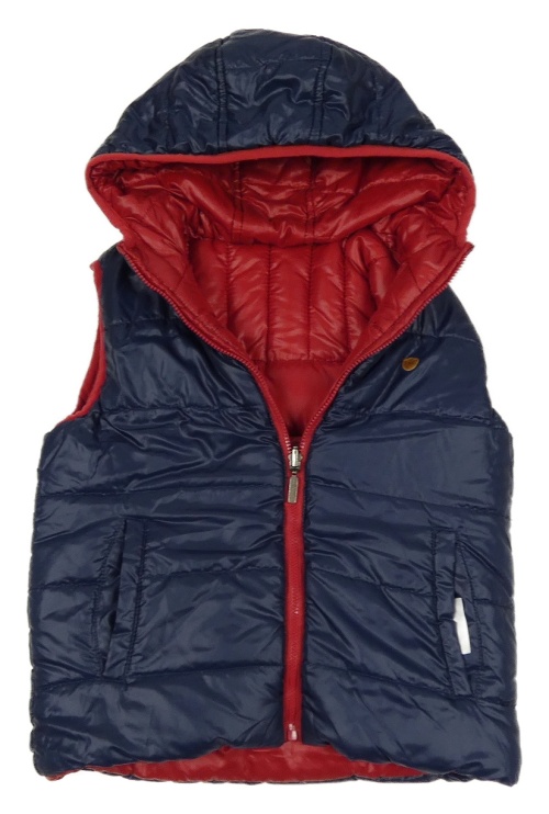 Tmavomodrá šusťáková zateplená oboustranná vesta s kapucí Mayoral