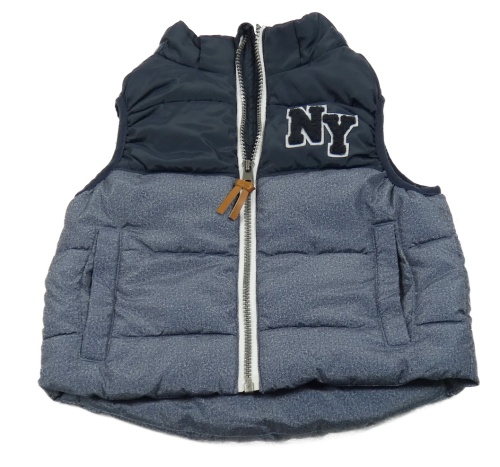 Tmavomodro-melírovaná šusťáková zateplená vesta s písmeny H&M