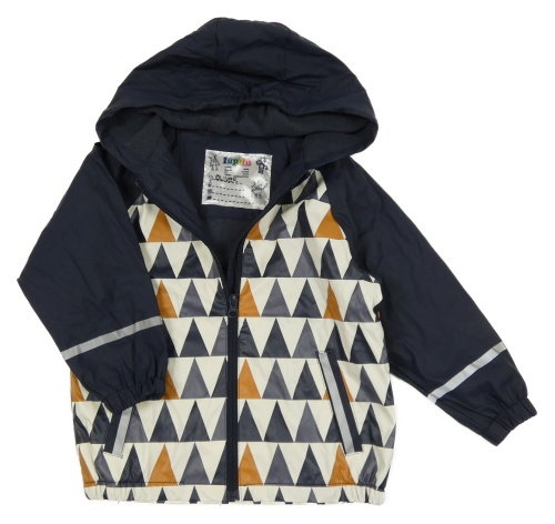 Tmavomodro-bílo-medová vzorovaná nepromokavá jarní bunda s kapucí Lupilu
