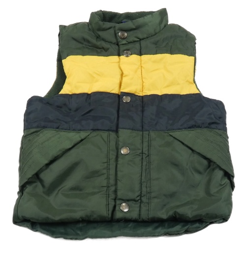Tmavozeleno-žluto-tmavomodrá šusťáková zateplená vesta Lupilu