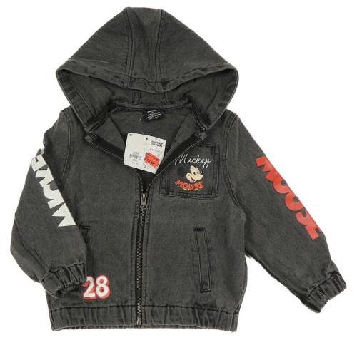 Nové - Tmavošedá riflová bunda s Mickeym a kapucí Primark