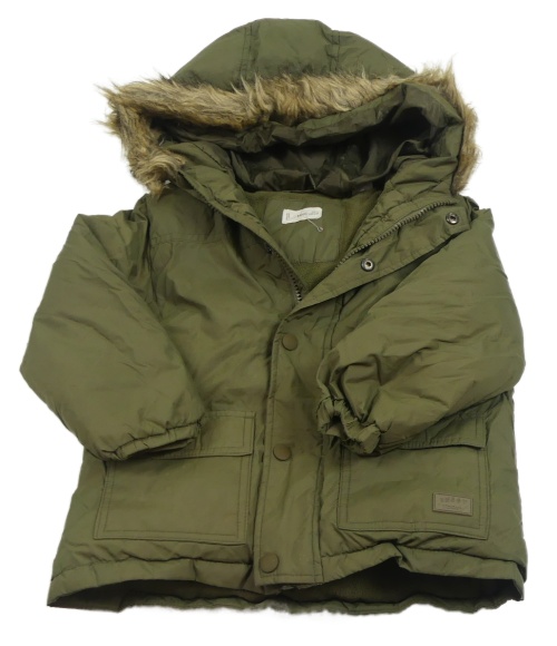 Khaki šusťáková zimní bunda s kapucí s kožešinou Mango