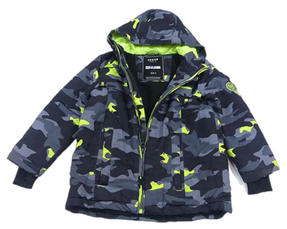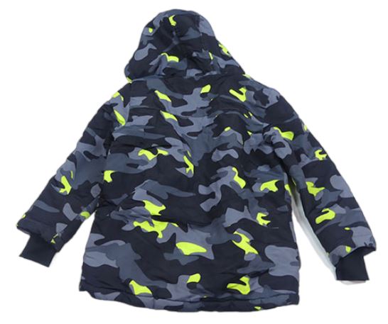 Černo-tmavošedo-neonově zelená army šusťáková zimní bunda s kapucí Matalan