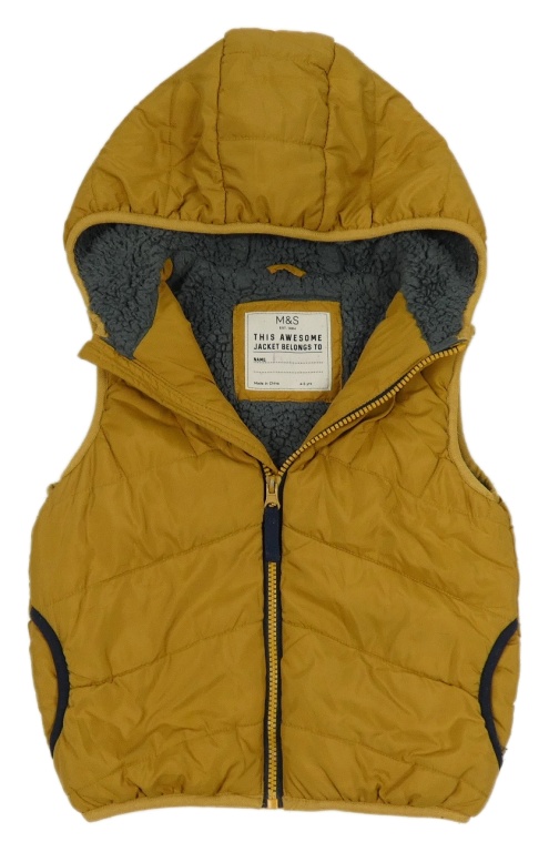 Hořčicová šusťáková zateplená vesta s kapucí M&S