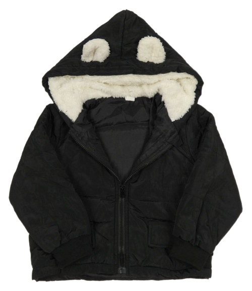 Černá prošívaná šusťáková pod/zimní bunda s kapucí s oušky SHEIN