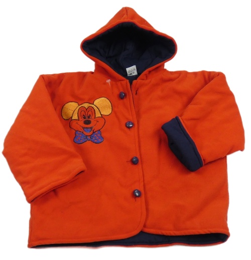 Červený zateplený kabát s Mickey a kapucí