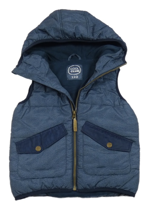 Tmavomodrá melírovaná šusťáková zateplená vesta s kapucí