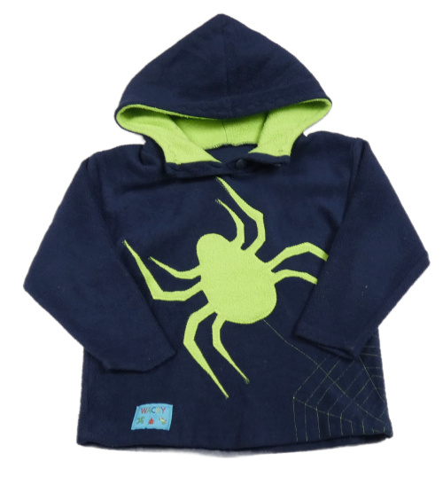 Tmavomodrá fleecová mikina s pavoukem a kapucí