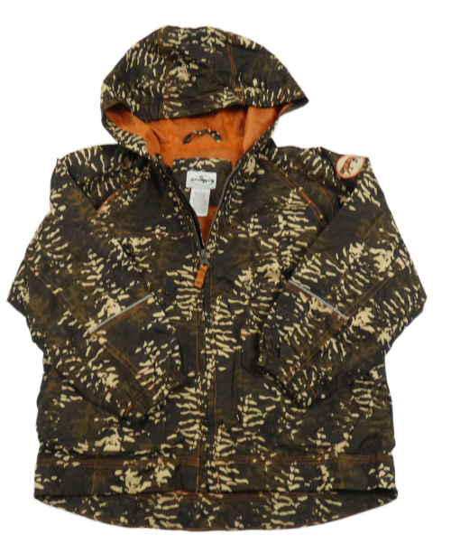 Hnědo-béžová vzorovaná šusťáková podzimní bunda s kapucí