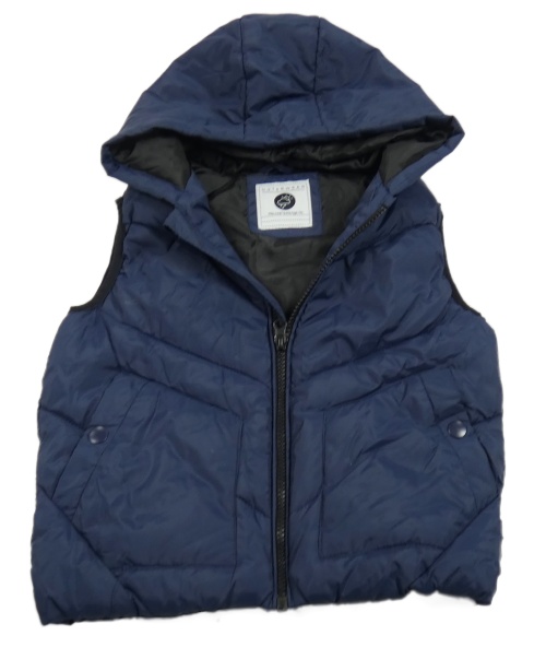 Tmavomodrá šusťáková zateplená vesta s kapucí Tu