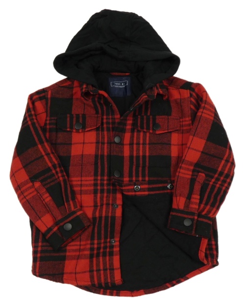 Červeno-černá kostkovaná zateplená košilová bunda s kapucí Next