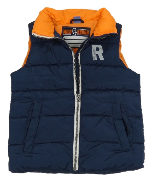 Tmavomodrá prošívaná šusťáková zateplená vesta s písmenkem dopodopo