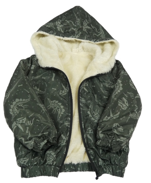 Tmavokhaki šusťáková zateplená bunda s kostrami dinosaurů