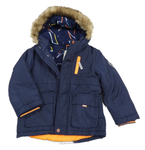 Tmavomodrá šusťáková zimní bunda s kapsami a kapucí s kožešinou F&F