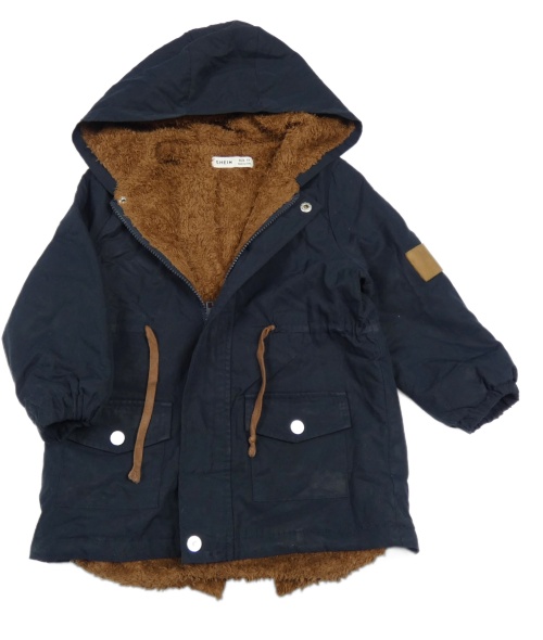 Tmavomodrá šusťáková zateplená parka s kapucí Shein