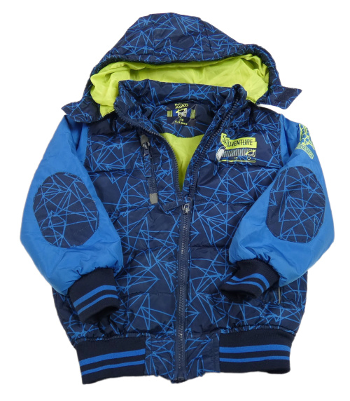 Tmavomodro-modrá šusťáková zimní bunda se vzorem a kapucí Kiki&Koko