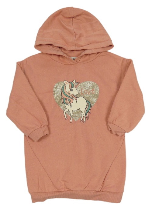 Růžové teplákové šaty s jednorožcem a kapucí C&A